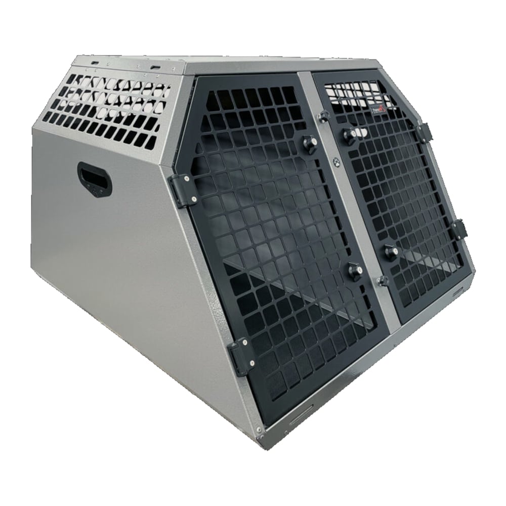 Elle dispose également de poignées de porte verrouillables à clé pour plus de sécurité. Pour une stabilité supplémentaire pour le/les chien(s) pendant le transport, un tapis antidérapant est livré à l’intérieur de la cage.