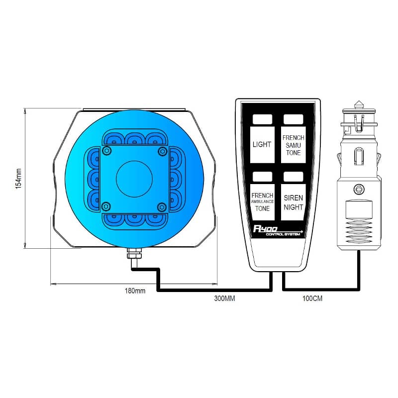 Combiné Gyrophare-Sirène – 30 tonalités Programmables – Bleu