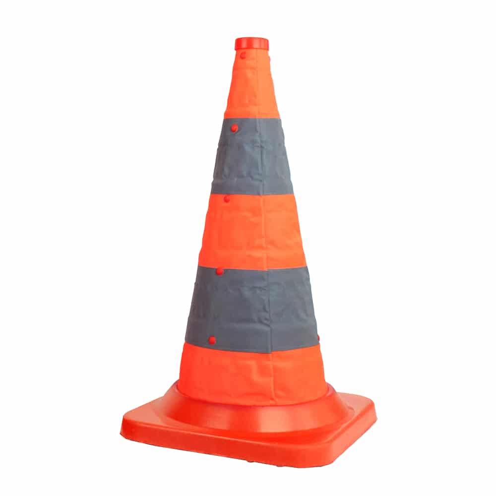 Tout comme le cône de chantier non-pliable, le cône de signalisation pliable ou rétractable est à utiliser pour garantir la sécurité de ses utilisateurs ainsi que de tous les usagers alentours. Sa couleur orange lui permet d’être visible de loin dans n’importe quel environnement et sous n’importe quelle condition météorologique. Ses bandes rétroréfléchissantes permettent de voir le cône en cas de basse luminosité et la nuit avec des feux ou une lampe.