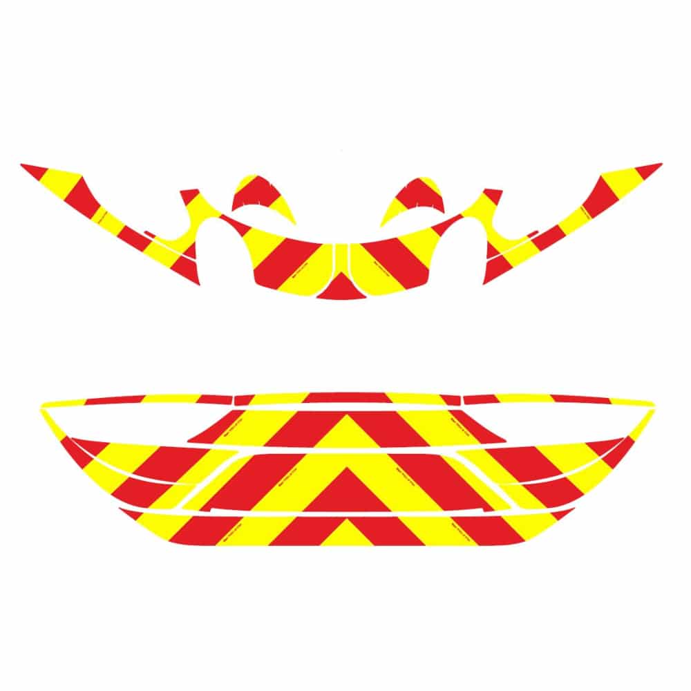 Kit de balisage composé d’un film Avery Dennison avec chevrons alternés Jaune et Rouge.