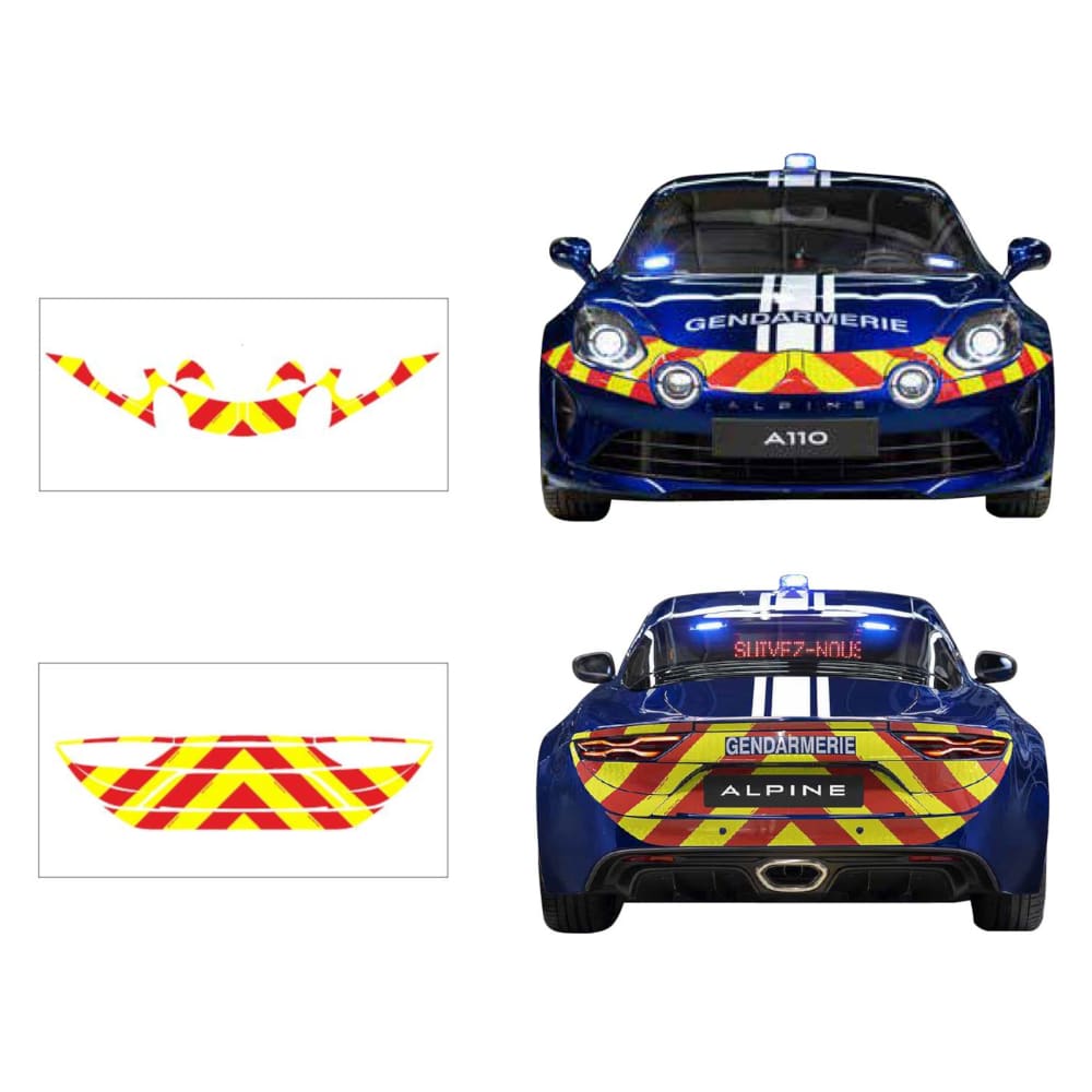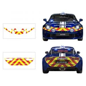 La réglementation en vigueur N.I.T. 273 vous impose d’utiliser des films homologués avec n° d’homologation TPESC sur chaque strie jaune, sans quoi le balisage n’est pas réglementaire. Extrait de la NIT 273 (signalisation complémentaire des véhicules des services d’incendie et de secours) :