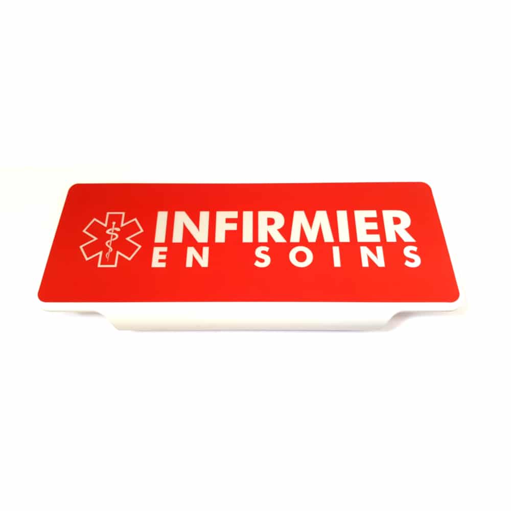 Plaque pare-soleil Infirmier en Soins – Rouge – Rétroréfléchissante