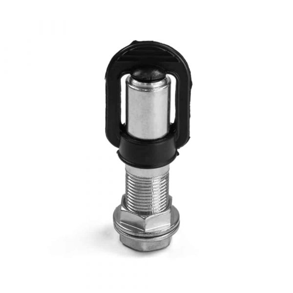 Prise de connexion filetée en acier zingué, écrou en zamak, capuchon en caoutchouc.